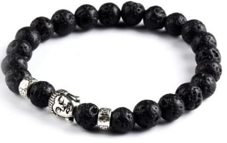 Ανδρικό βραχιόλι με μαύρους λίθους από λάβα, ασημί στοιχεία από ατσάλι και ματ φινίρισμα.